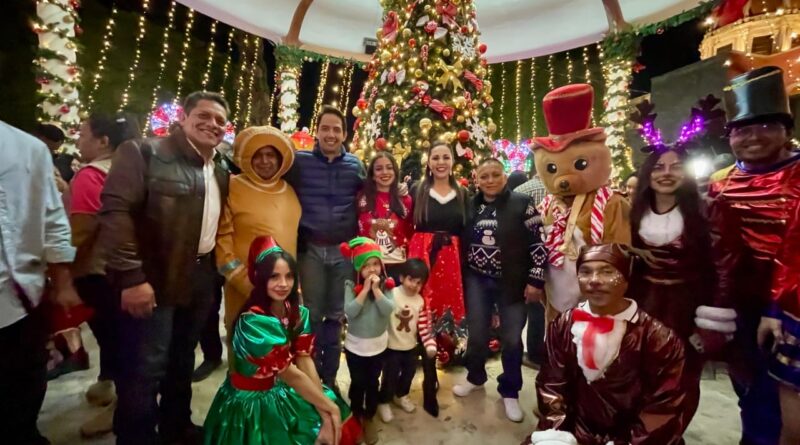 Autoridades municipales de Silao llevan a cabo encendido del árbol navideño y nacimiento.