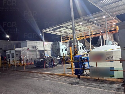 Durante el operativo, realizado el 28 de enero pasado, las autoridades aseguraron un cubitanque de mil litros, un contenedor de cinco mil litros, una bomba despachadora con contador de litros, 16 cajas secas de carga para tractocamión, nueve tractocamiones, cinco tractocamiones con cajas acopladas, dos mil 550 litros de hidrocarburo y el inmueble, entre otros elementos de prueba con los que el Ministerio Público de la Federación continuará con la investigación.
