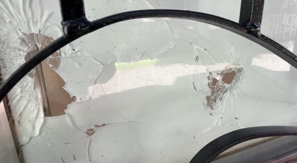 En la fachada de la casa, así como en la puerta y cristales de la ventana se observan impactos de arma de fuego.