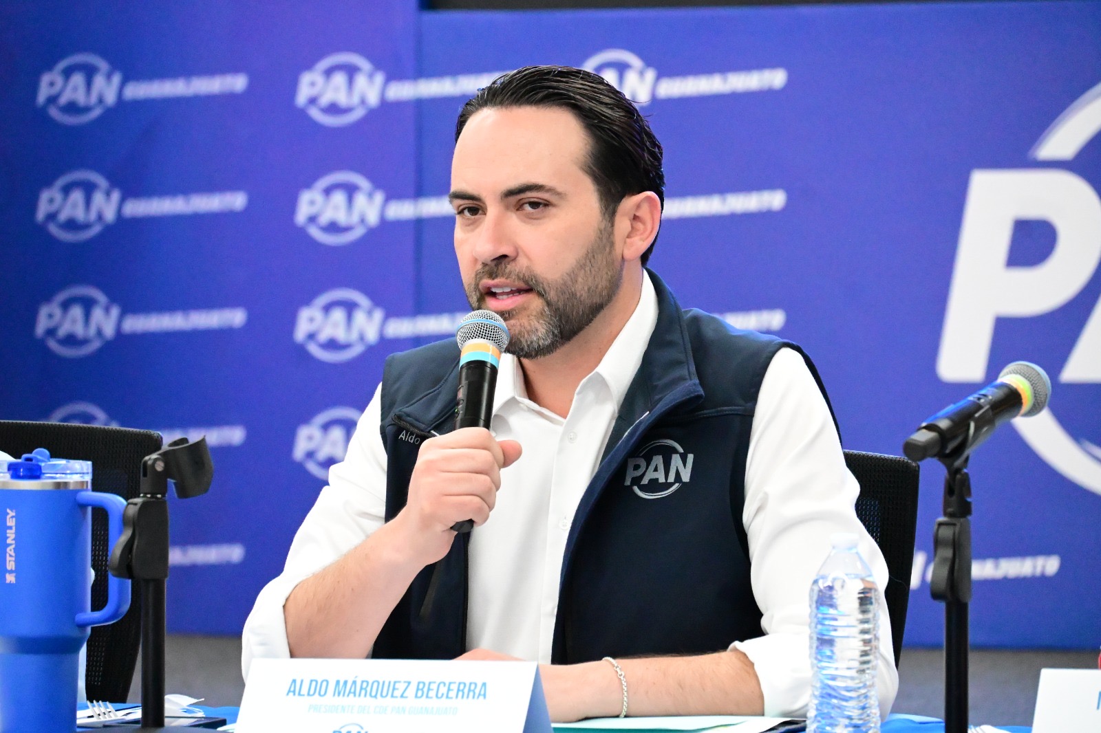 León, Gto. 20 abril 2026. (Al Instante).- El presidente del Partido Acción Nacional (PAN), en Guanajuato, Aldo Márquez, dijo que en Acción Nacional no se solapa ni se encubre a nadie, respecto a la renuncia de Allan León Aguirre como secretario de Vinculación y Atención a los Leoneses.