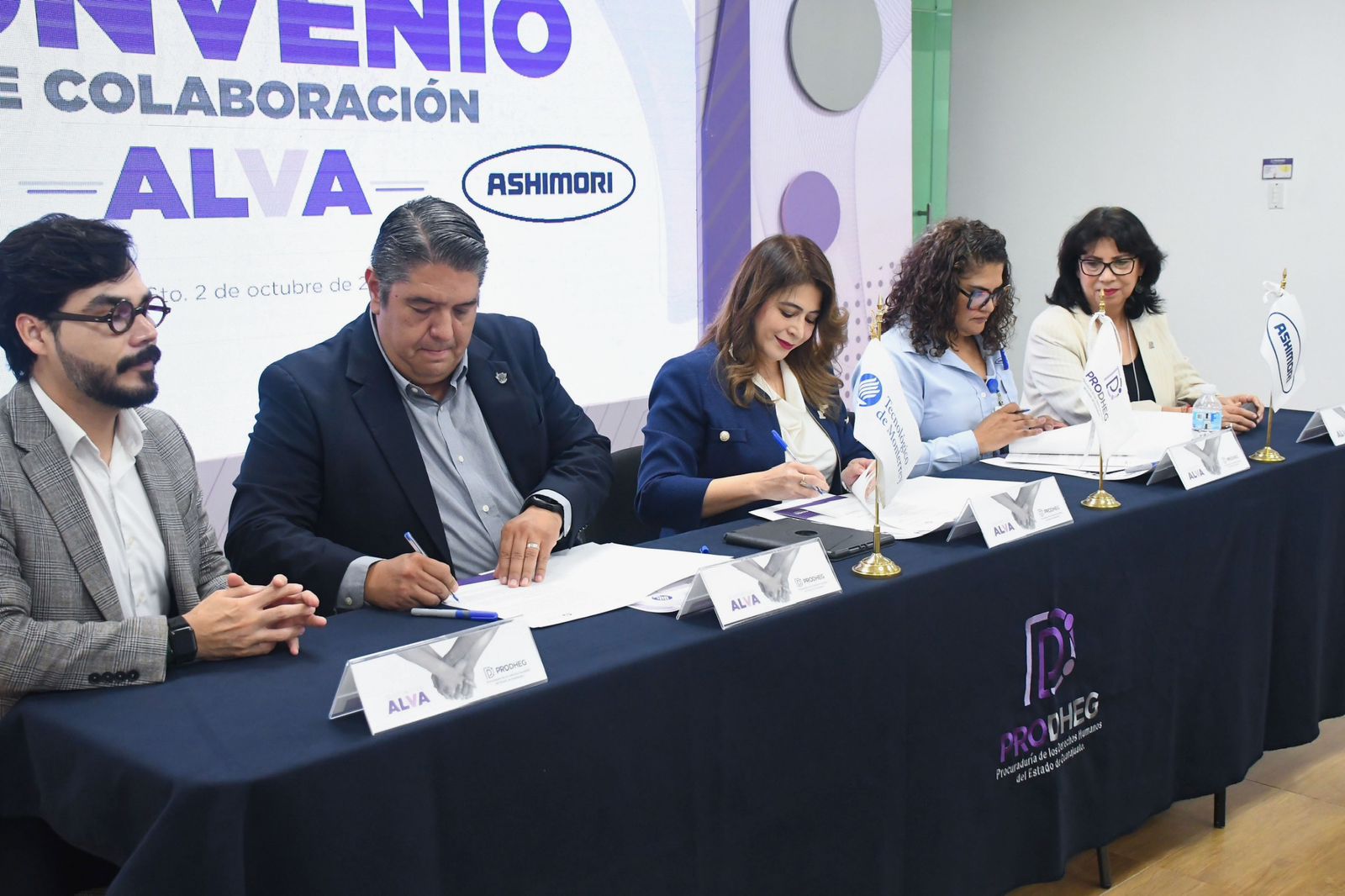 León, Gto.- 02 octubre 2025. (Al Instante).- En un esfuerzo por construir una sociedad más incluyente, igualitaria y libre de violencia, la Procuraduría de los Derechos Humanos del Estado de Guanajuato (PRODHEG) formalizó convenios de colaboración con el Instituto Tecnológico y de Estudios Superiores de Monterrey (ITESM), Campus León, y con Ashimori Industria de México, para sumarlos a la iniciativa del Distintivo ALVA (Alianza contra la Violencia).