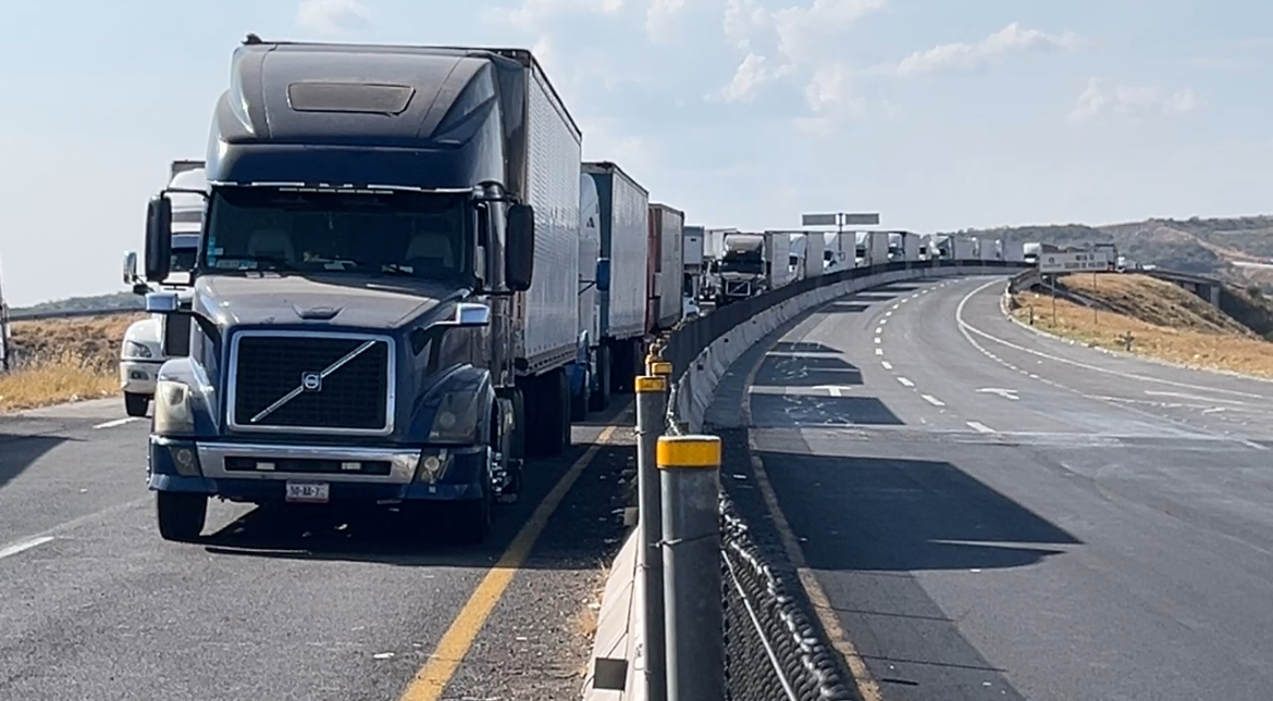 Pénjamo, Gto. 27 noviembre 2025. (Al Instante).- El último bloqueo carretero que se mantiene en Guanajuato ha desquiciado a transportistas de mercancías que pierden tiempo y dinero por estar varados hasta 9 horas.