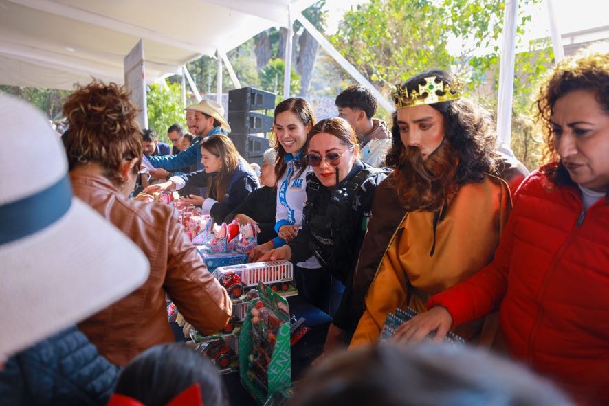 Después, la magia se concentró en la Plaza de la Ciudadanía Griselda Álvarez, donde se concentró una gran cantidad de niñas y niños que, entre gritos y sonrisas, recibieron los obsequios de manos de Ale Gutiérrez y los Reyes Magos.