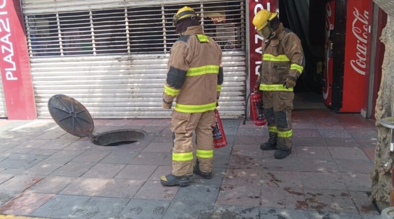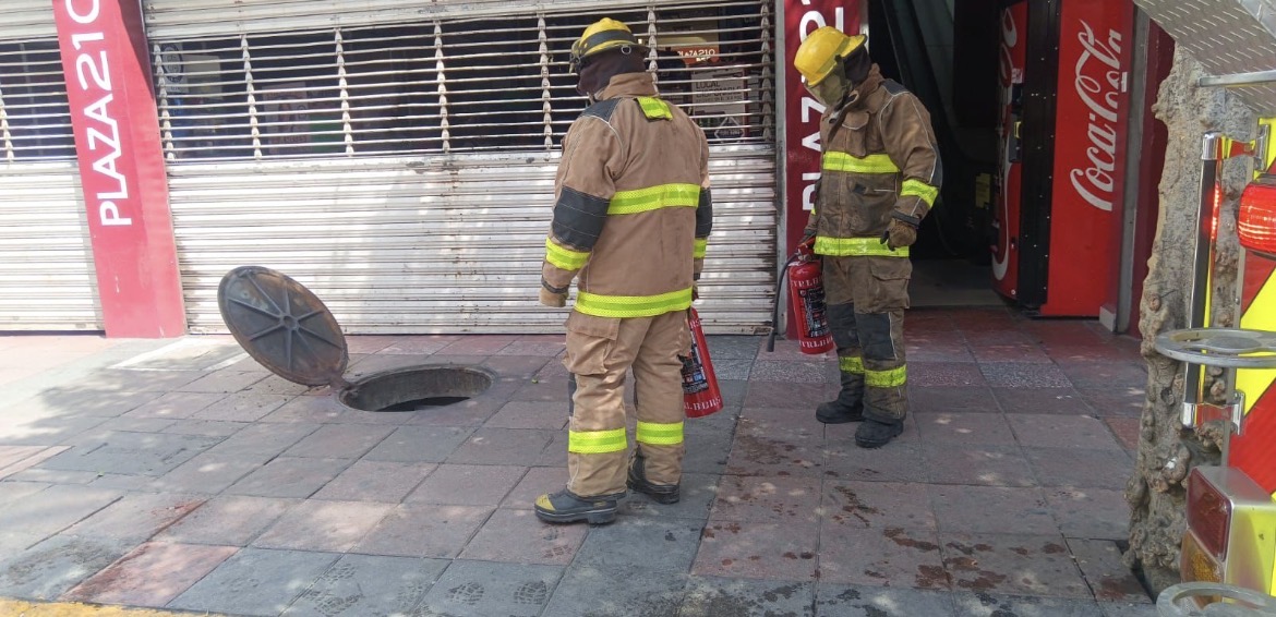 León, Gto. 05 abril 2026- Una explosión en la parte baja de una coladera, de la Comisión Federal de Electricidad, propiciada por un corto circuito, género el cierre parcial de la calle 5 de Mayo, en la zona centro de León.