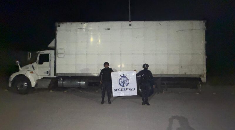 Secretaría de Seguridad asegura en Celaya camión robado con 11 toneladas de producto agrícola.