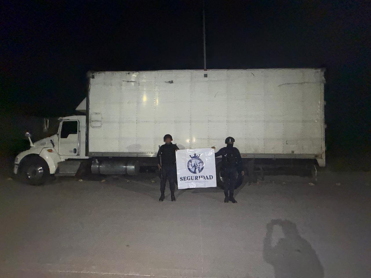 Integrantes de las Fuerzas de Seguridad Pública del Estado (FSPE) detectaron la puerta abierta de un camión blanco, tipo tortón marca Kenworth con caja seca. Durante la revisión, confirmaron que la unidad presentaba huellas de desvalijamiento.