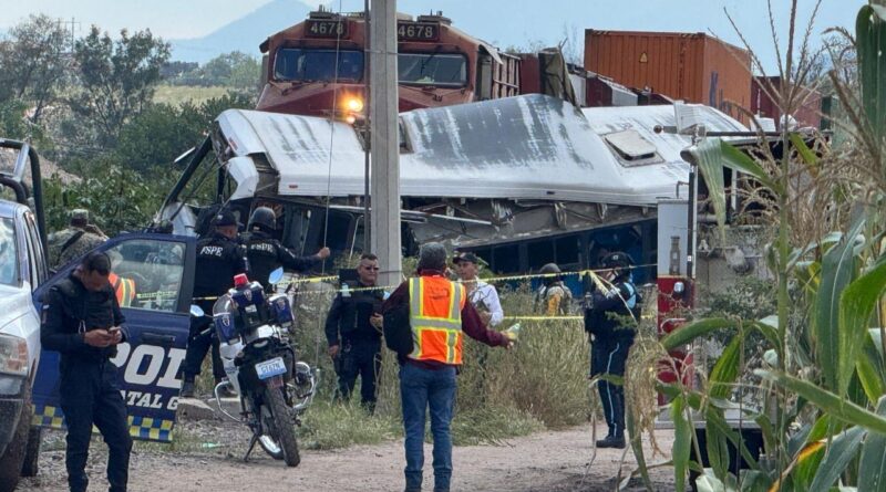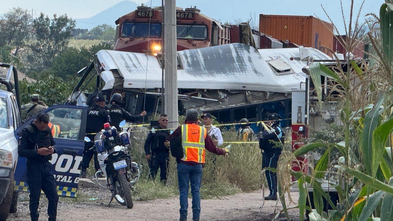 Tren se lleva camión de transporte de pasajeros en Comonfort. Hay 5 muertos y 15 lesionados.