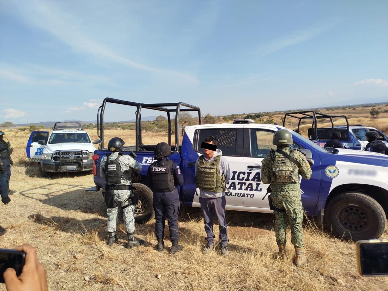 Durante la intervención se aseguró un arma larga tipo fusil, cargadores y cartuchos útiles, así como equipo táctico, un inhibidor de señal, estrellas ponchallantas y un vehículo tipo pick up, marca Chevrolet, color rojo, sin placas de circulación. Todos los indicios quedaron a disposición de la Fiscalía General de la República (FGR), con sede en Celaya.
