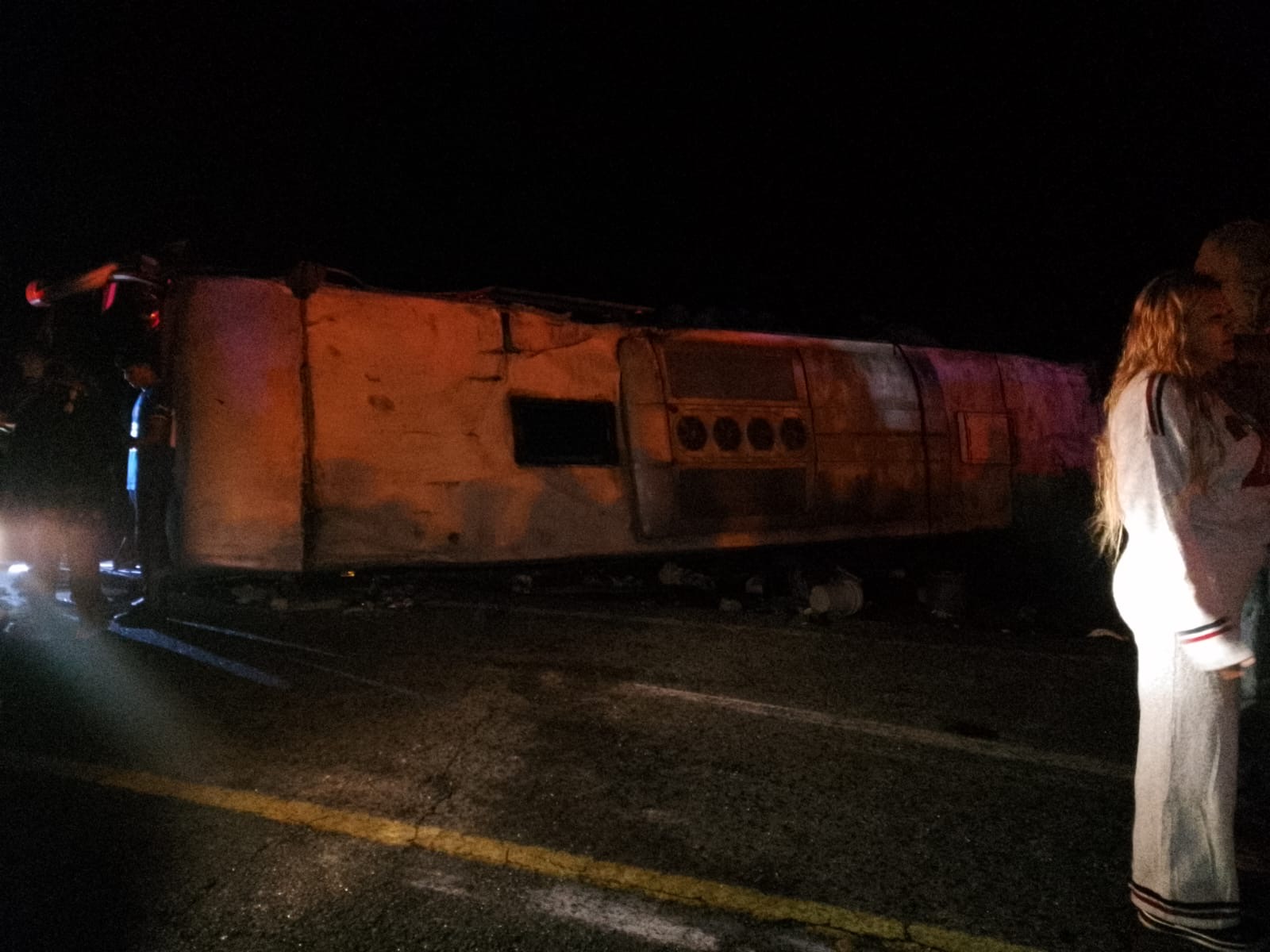 El hecho se registró cerca de las 11:15 de la noche cuando el chofer de la unidad perdió el control de la misma, salió de la cinta asfáltica y terminó sobre volteada sobre uno de sus costados.